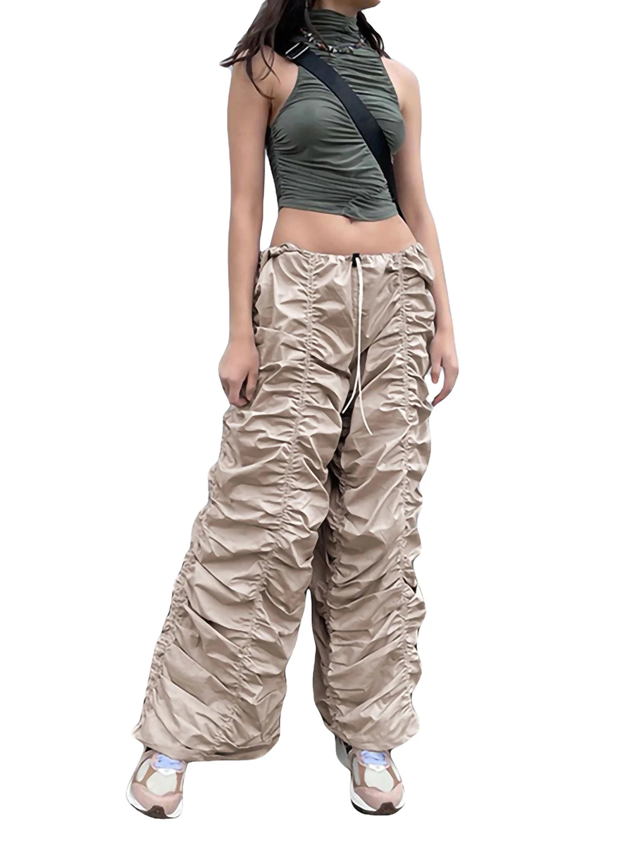 Брюки-карго женские с низкой посадкой, повседневные мешковатые штаны с рюшами, завязками, уличная одежда в стиле Харадзюку