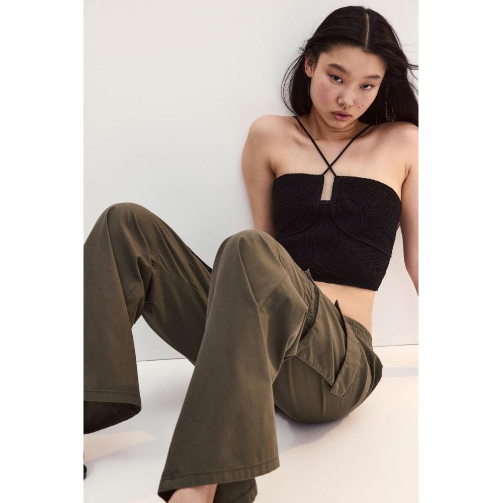 Брюки-карго из парусины HM темно-зеленого цвета хаки