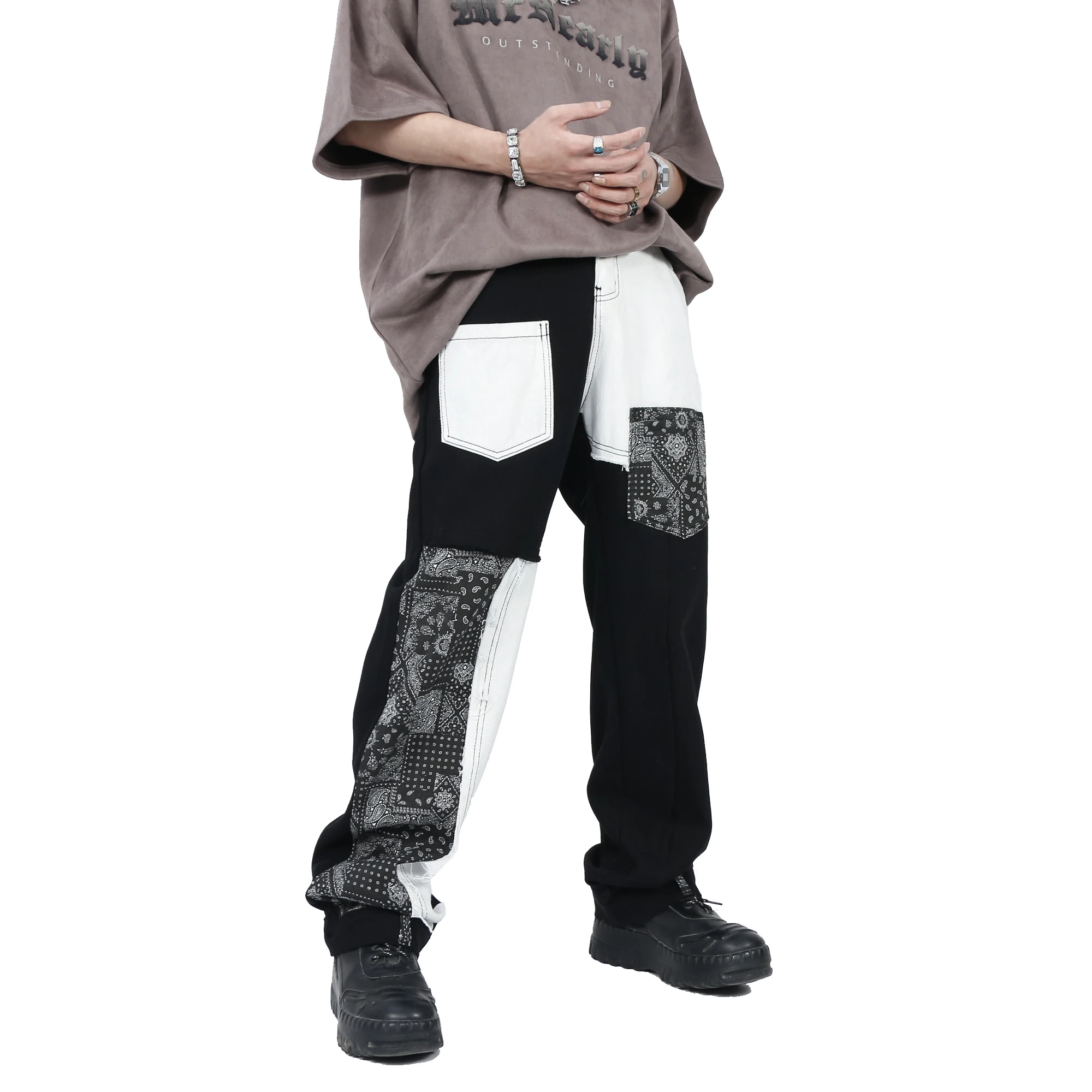 Брюки-карго мужские в стиле Харадзюку, уличная одежда в стиле пэчворк, с цветком кешью, модные повседневные штаны с широкими штанинами, боль...