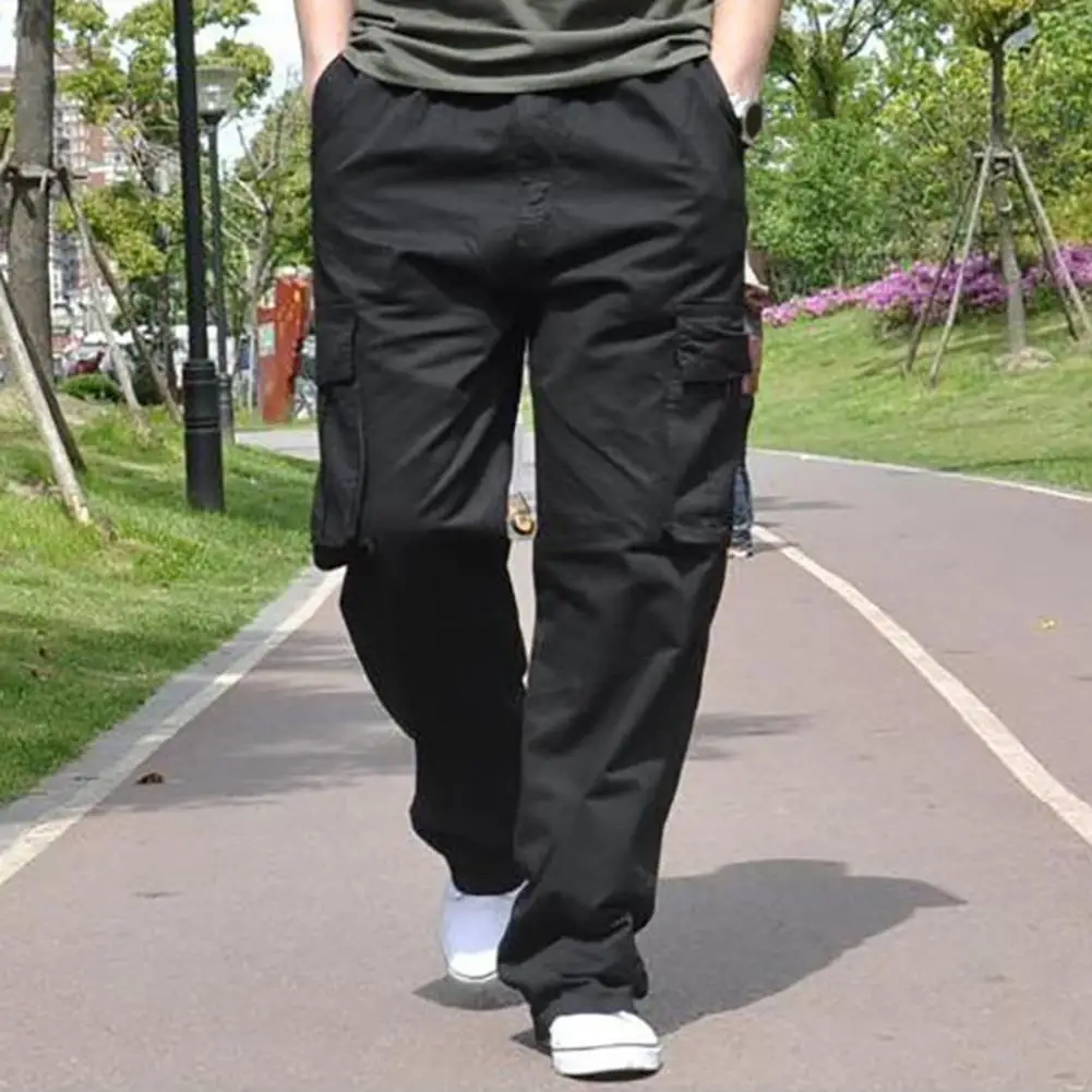 Брюки-карго мужские прямые, спортивный костюм для бега с завышенной талией и широкими штанинами, тактические штаны с несколькими карманами, на осень