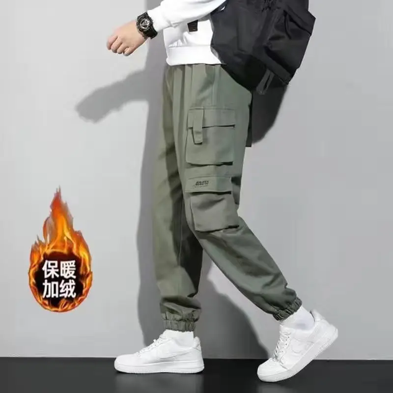 Брюки-карго мужские хлопковые, с множеством карманов, на завязках
