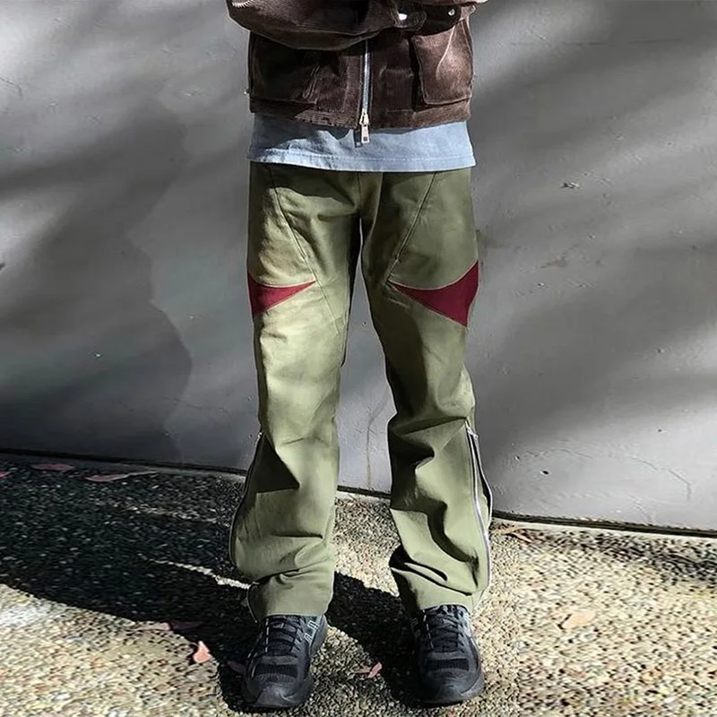 Брюки-карго на молнии для мужчин и женщин, шикарные контрастные рабочие брюки в стиле сафари, повседневные штаны