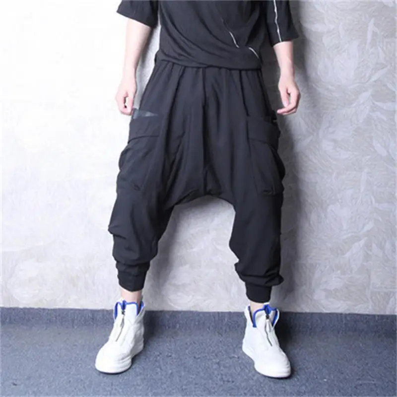 Брюки мужские повседневные в стиле хип-хоп, индивидуальные штаны-султанки с большими карманами, украшенные тесьмой, в стиле хип-хоп