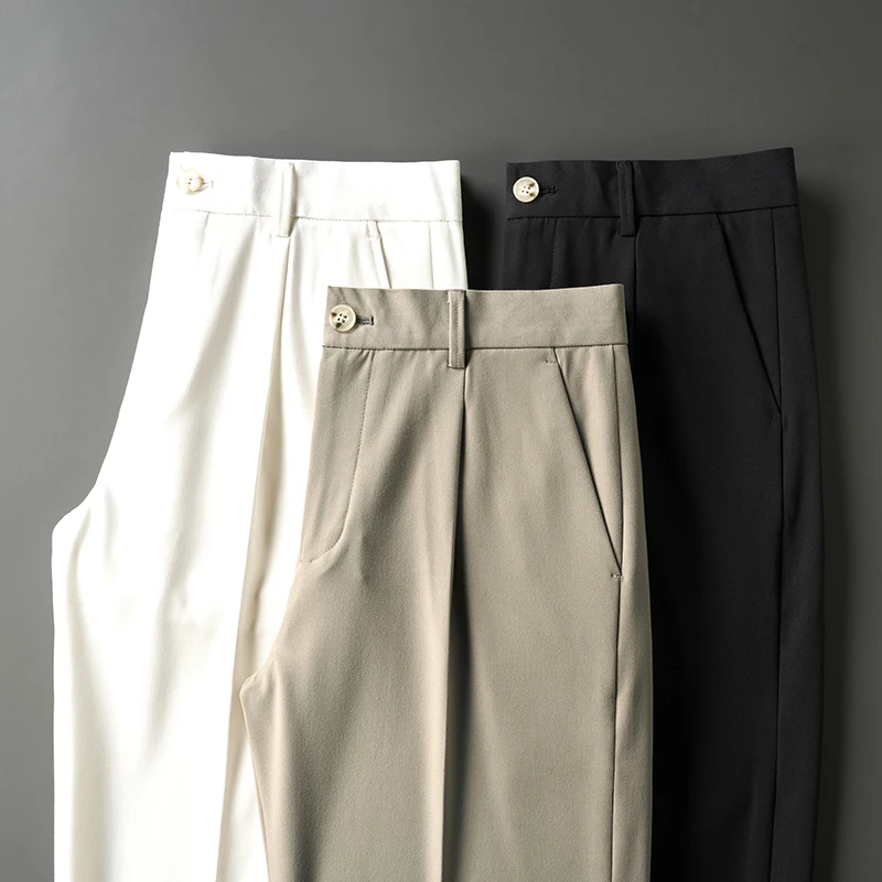 Брюки мужские с завышенной талией, приталенные Костюмные штаны в британском стиле, деловые брюки для офиса, вечеринки, свадьбы, осень
