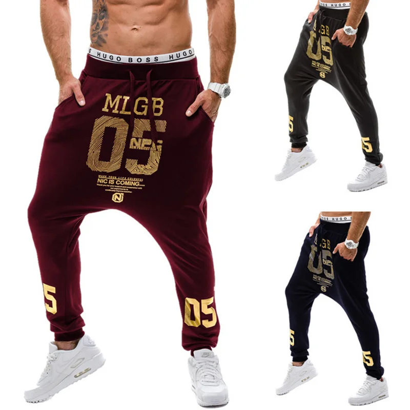 Брюки мужские с низким шаговым швом, повседневные штаны в стиле хип-хоп, Уличная Одежда для танцев, уличные штаны с принтом золотых цифр, весна-осень