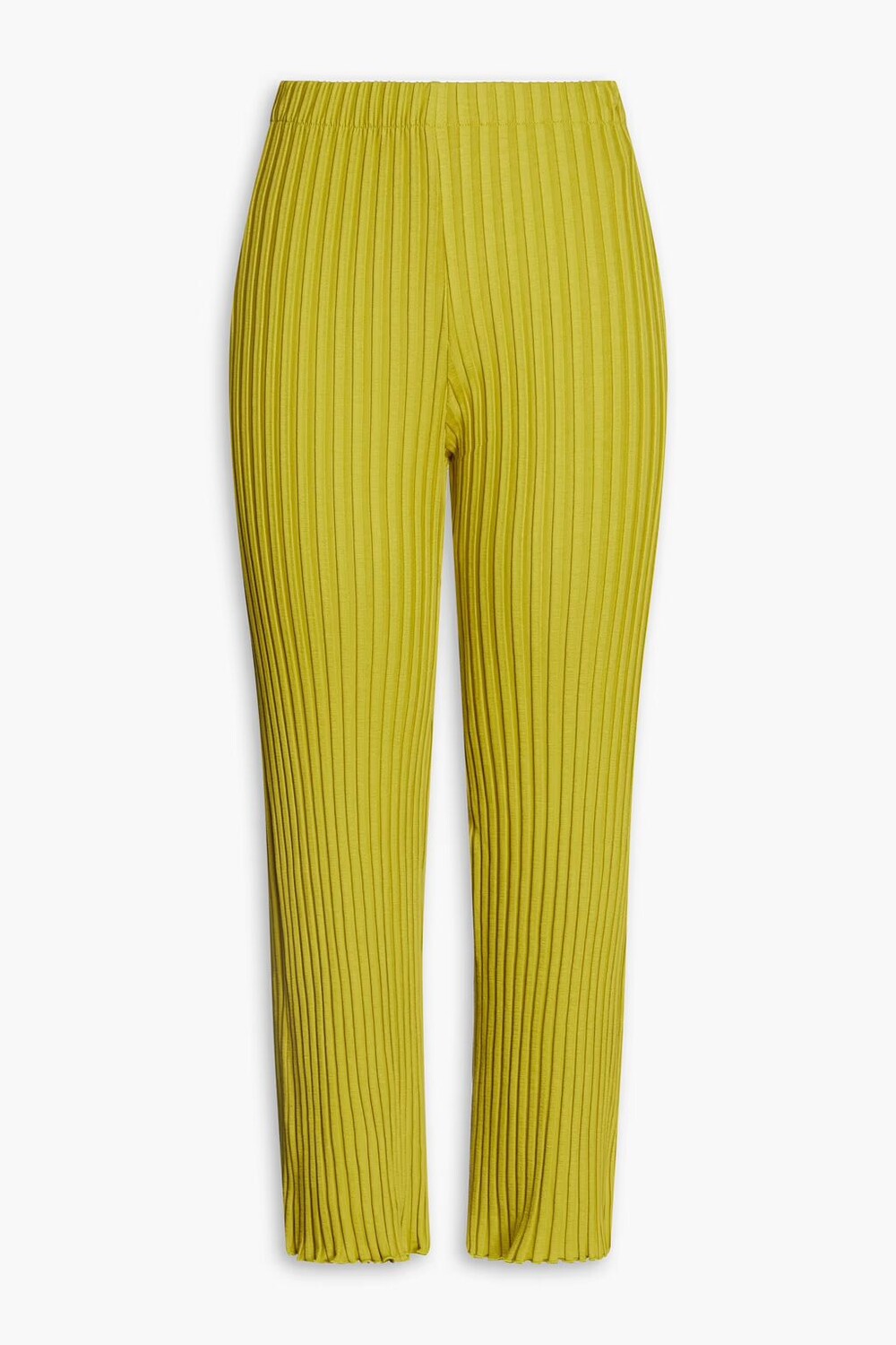 Брюки прямого кроя из эластичного микромодала в рубчик. Simon Miller, шартрез