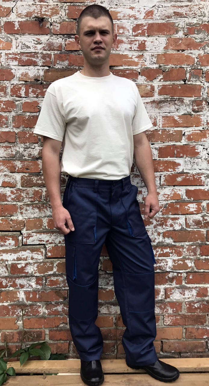 Брюки рабочие "Атлант" синие, спецодежда демисезонная 56-58, Синий