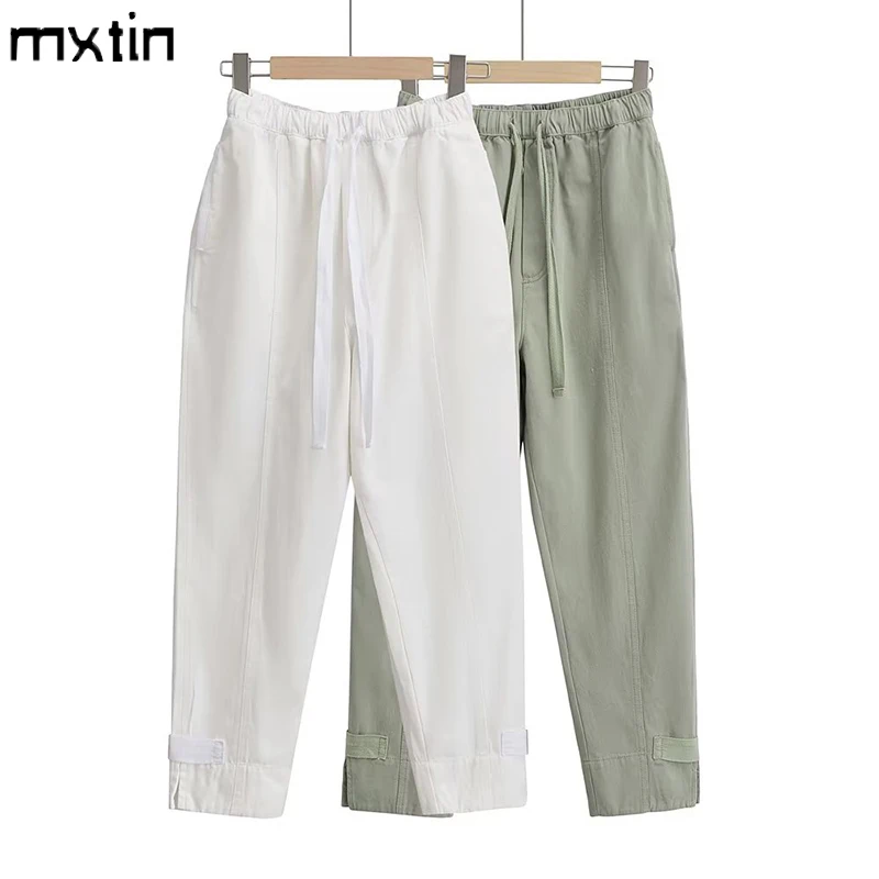 Брюки-султанки женские на шнуровке, Модные Винтажные офисные повседневные штаны с эластичным поясом и карманами, весна-осень