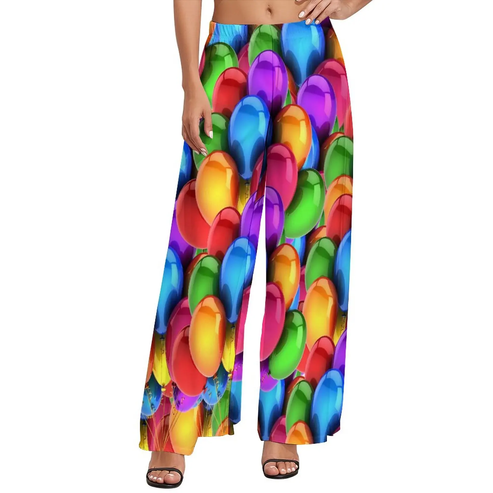 Брюки с принтом воздушного шара, прямые широкие повседневные штаны с эластичным завышенным поясом, уличная одежда, большие размеры 5XL 6XL
