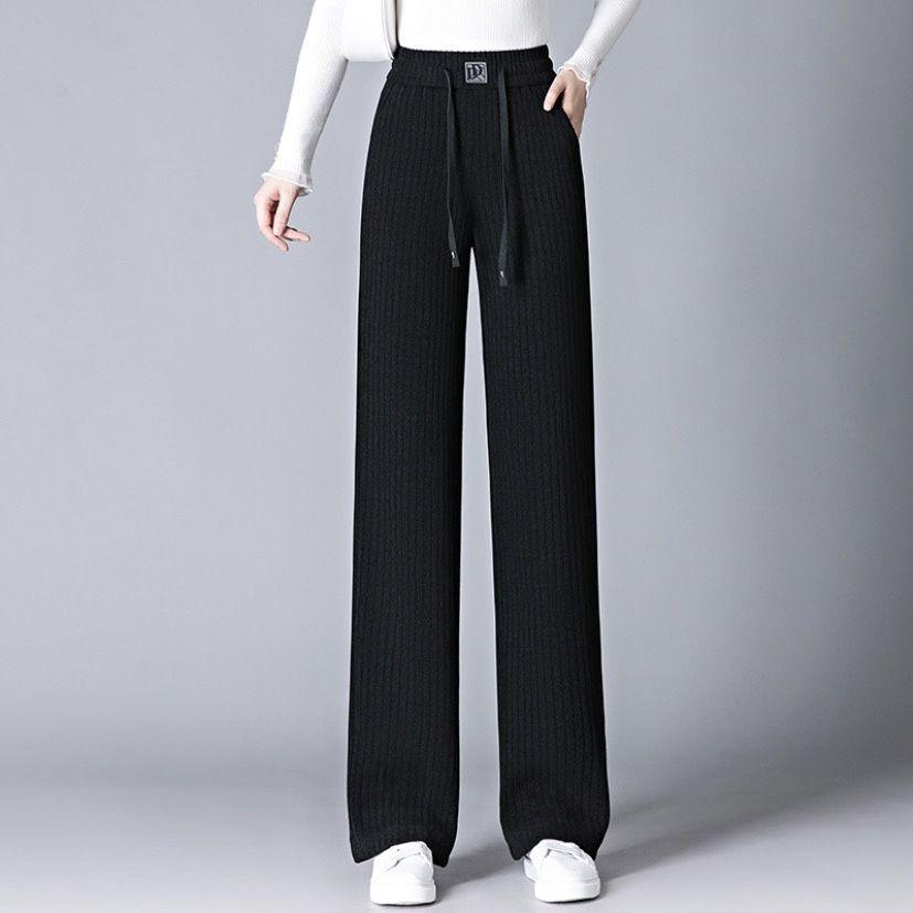 Брюки широкого покроя из шенилла на весну и осень, модные свободные повседневные прямые брюки для мам S чёрный
