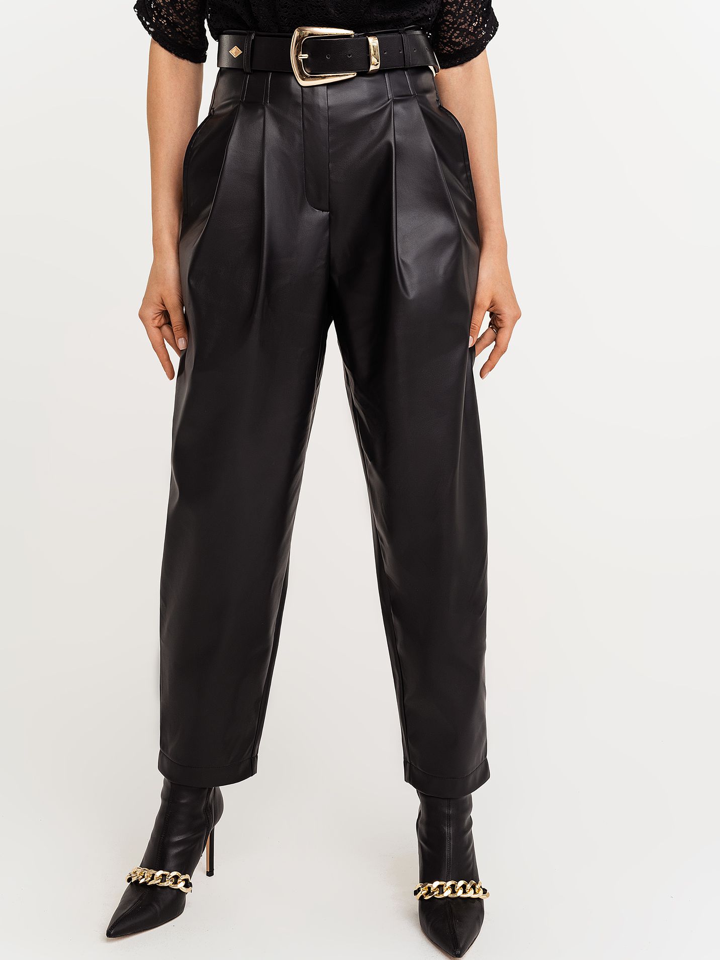 Особенности модели:- Брюки свободного кроя из экокожи с высокой посадкой и складками у пояса - 2 врезных боковых кармана - Застежка на молнию спереди - Широкие зауженные штанины - Смелая альтернатива офисным и вечерним брюкам - Размер на модели - SBefree - это легкая мода для молодых, ярких, динамичных, позитивных парней и девушек. Креативные решения, легкая ирония в принтах и графике, доступные цены - Befree, как и сама мода, всегда в движении!