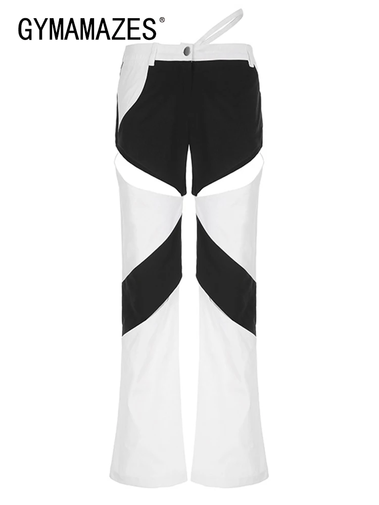 Брюки GYMAMAZES женские с вырезами, шикарные прямые штаны с завышенной талией, уличная одежда, модная одежда