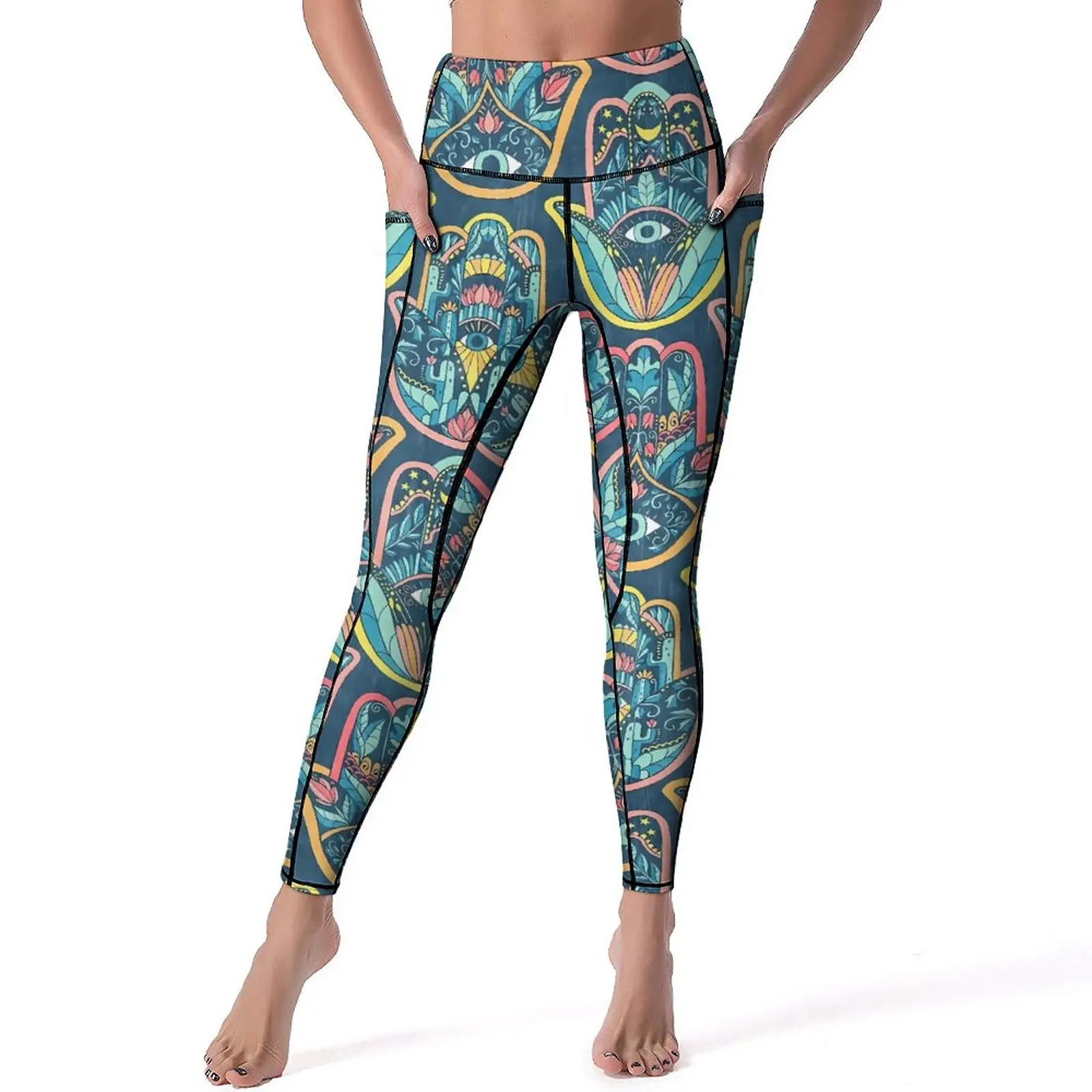 Брюки Hamsa женские для йоги, повседневные ретро-Леггинсы с принтом, с эффектом пуш-ап, эластичные спортивные штаны с принтом для фитнеса