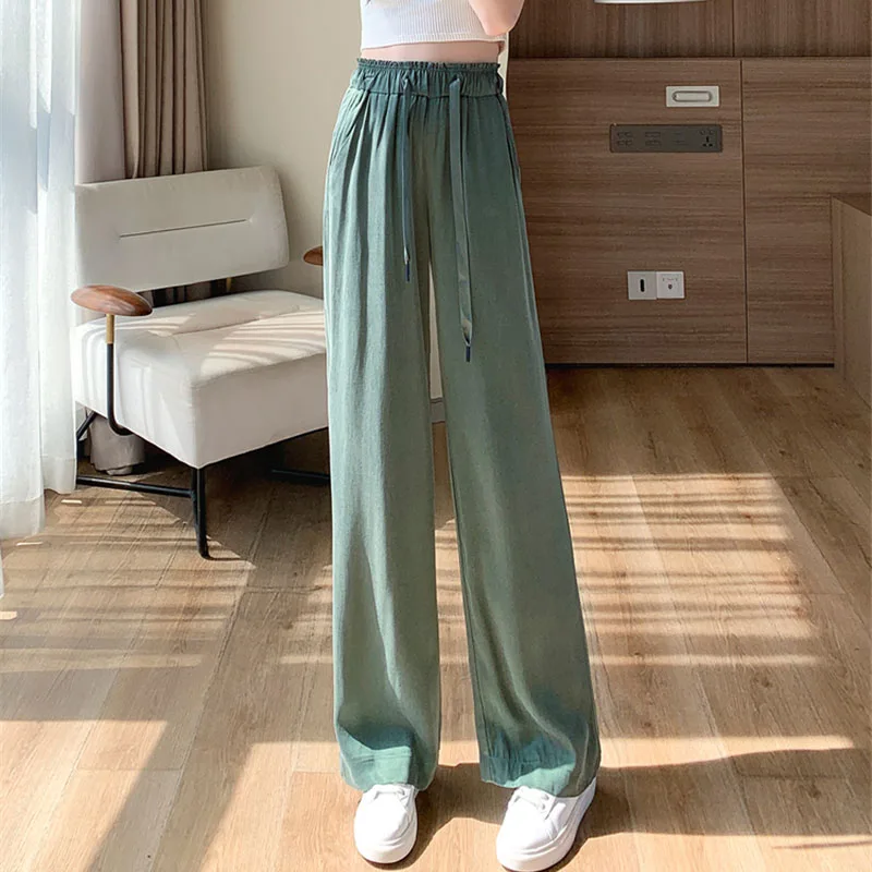 Брюки Limiguyue женские с широкими штанинами, летние спортивные штаны на шнуровке, свободные прямые повседневные атласные тонкие спортивные шт...