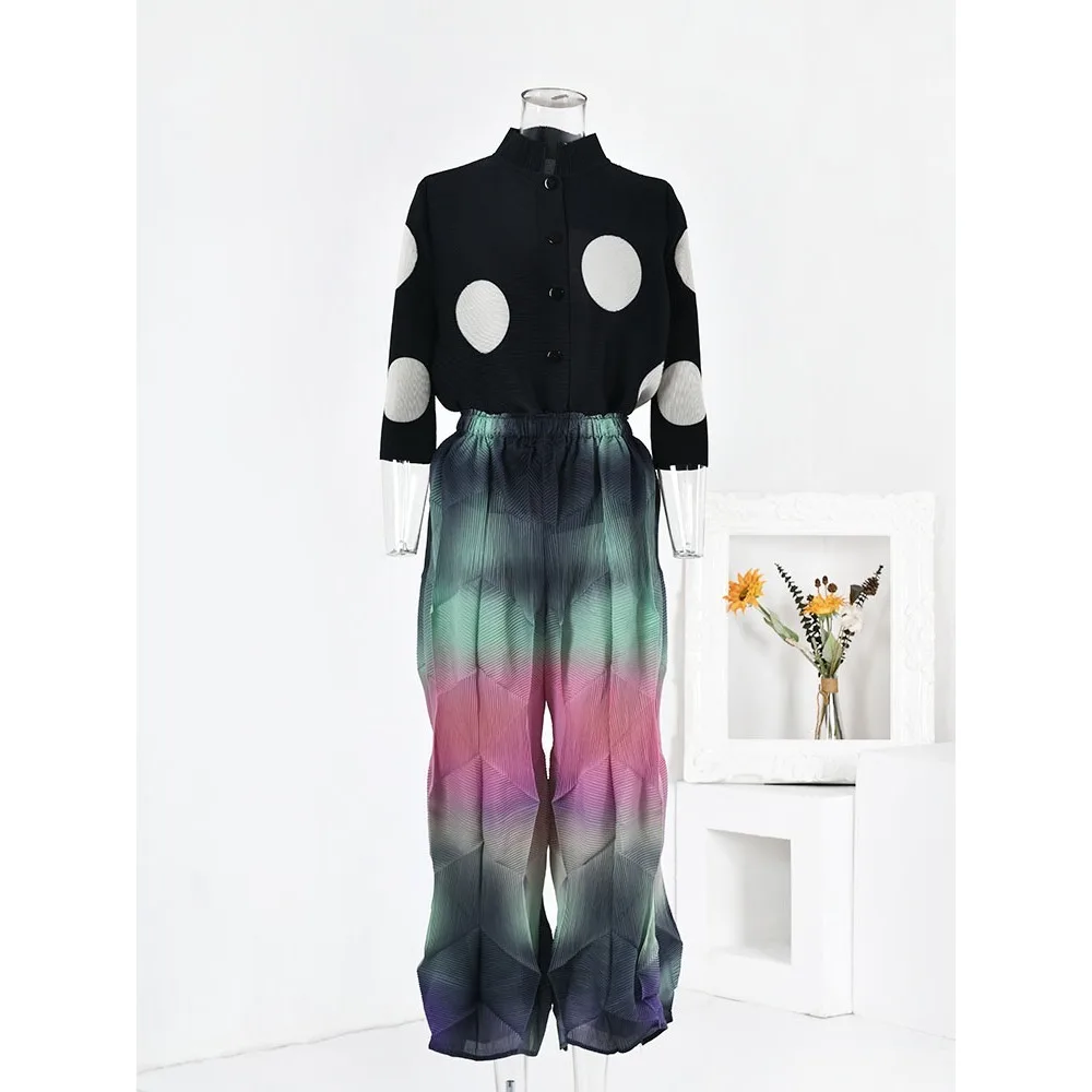 Брюки Miyake женские с широкими штанинами, модные складки с градиентом, эластичные брюки контрастных цветов с завышенной талией, женская одежда