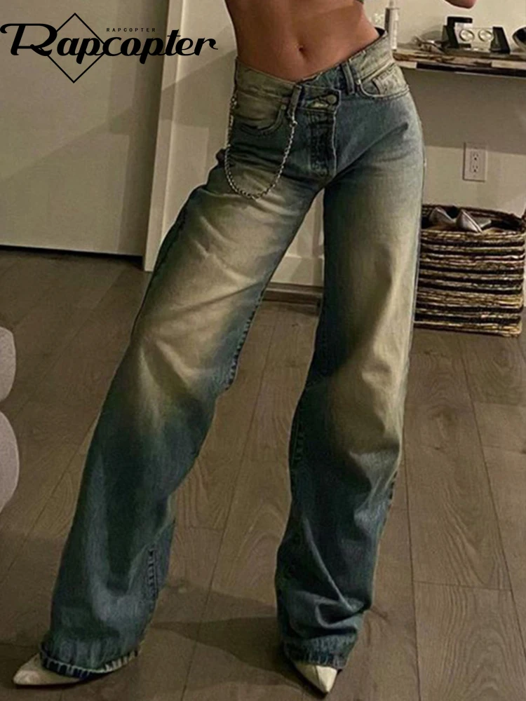 Брюки Rapcopter Y2K Женские Мешковатые, уличная одежда с завязкой, модные прямые винтажные базовые повседневные штаны в Корейском стиле 90-х