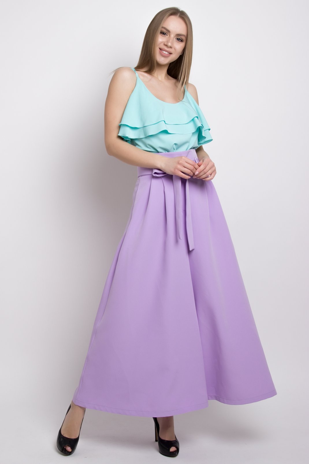 Шикарные брюки-палаццо безупречно подходят для создания женственного образа. Модель силуэта трапеция со складами на поясе. Это изделие невероятно удачно и смело совмещающее в себе удобство брюк и женственность юбок. Изделие на широком поясе с высокой посадкой по талии, в боковых швах карманы. Длина брюк по боковому шву 105 см, по шаговому шву 62 см.