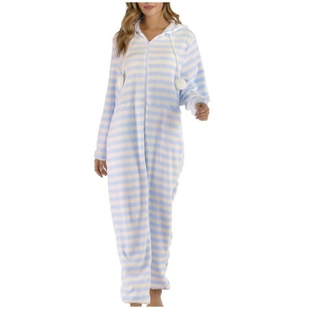 Women s Onesies Hooded Pajamas Soft Thick Winter One Piece Sleepwear Long Sleeve Print Jumpsuit Loungewear