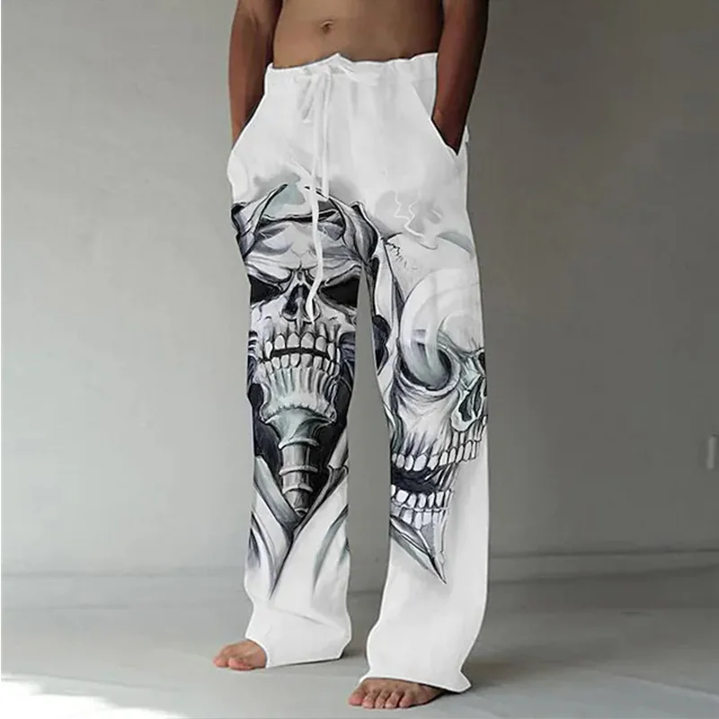 Брюки Y2k мужские прямые с эластичным шнурком и принтом черепа