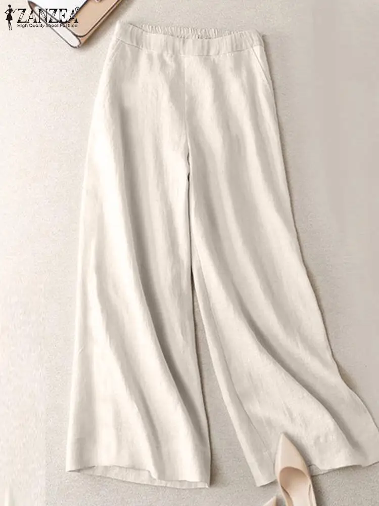 Брюки ZANZEA женские с широкими штанинами, модная одежда для работы, однотонные винтажные хлопковые брюки с завышенной талией, на лето