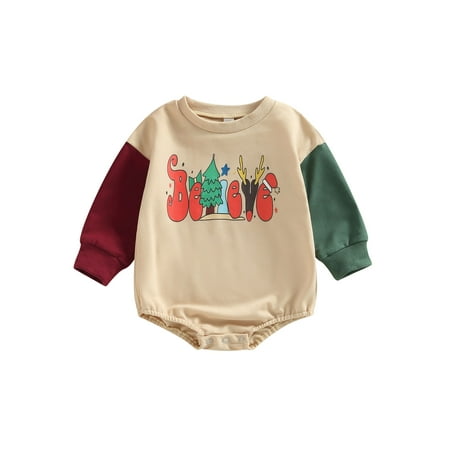 jaweiwi Infant Baby Autumn Christmas Romper for Boys Girls Cartoon Letter Print Long Sleeve Round Neck Snap Closure Jumpsuit Size 0 6 9 12 18 M