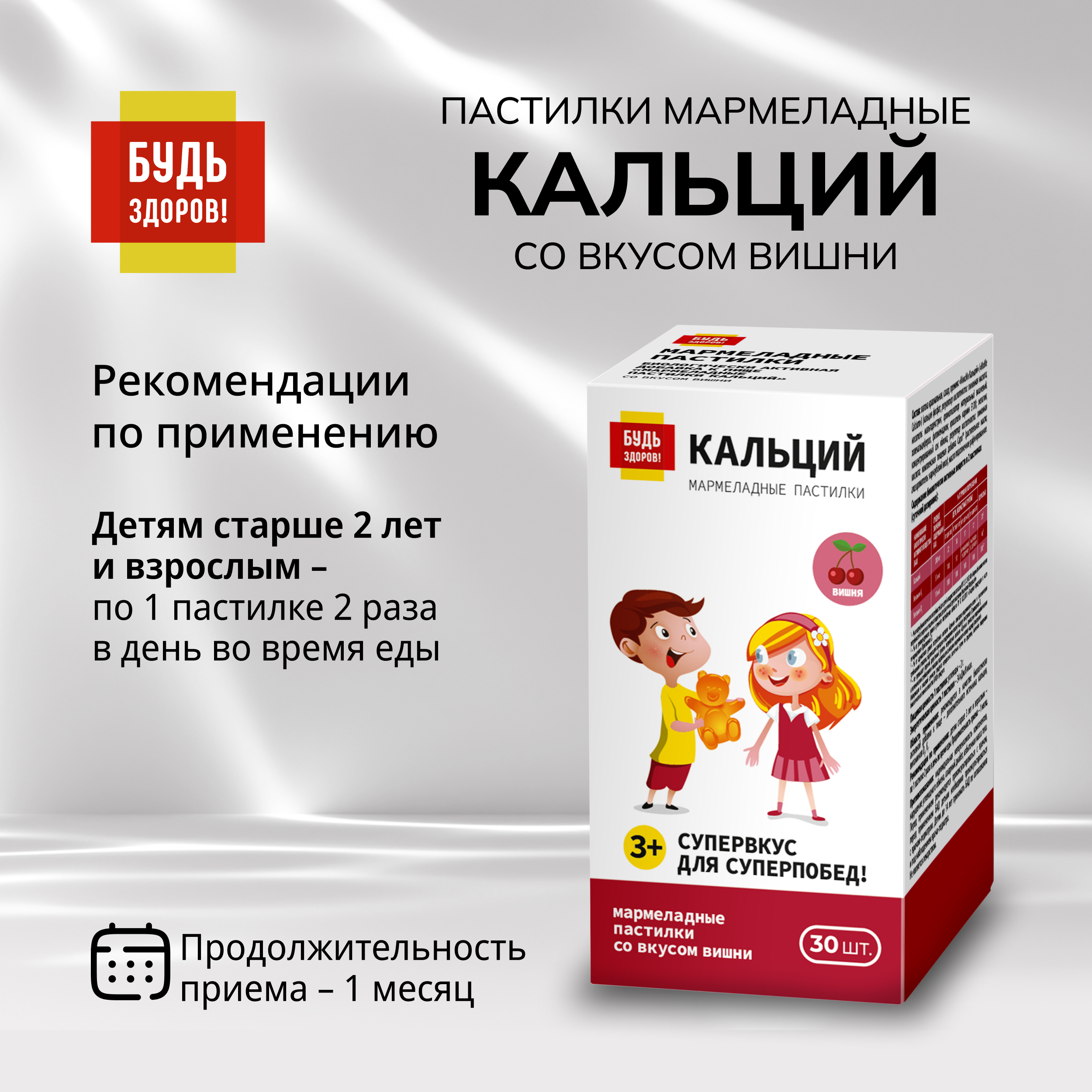 Будь Здоров Пастилки мармеладные Кальций со вкусом вишни с 3-х лет №30
