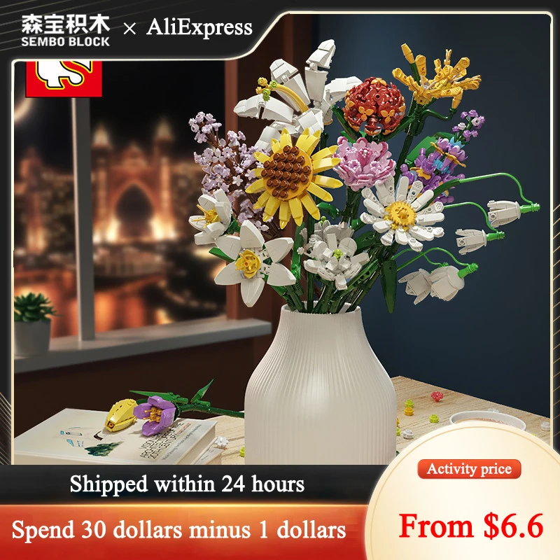 Букет строительных блоков вечный подарок на день святого Валентина для мальчиков и девочек, украшение на день рождения, рождественский под...