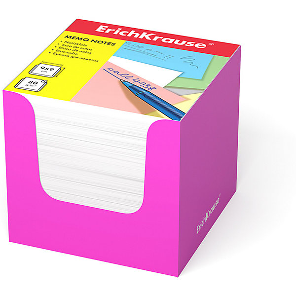 Бумага для заметок ErichKrause, 90x90x90 мм, белый, в розовой картонной подставке, Бумага для заметок ErichKrause, 90x90x90 мм, , в розовой картонной подставке