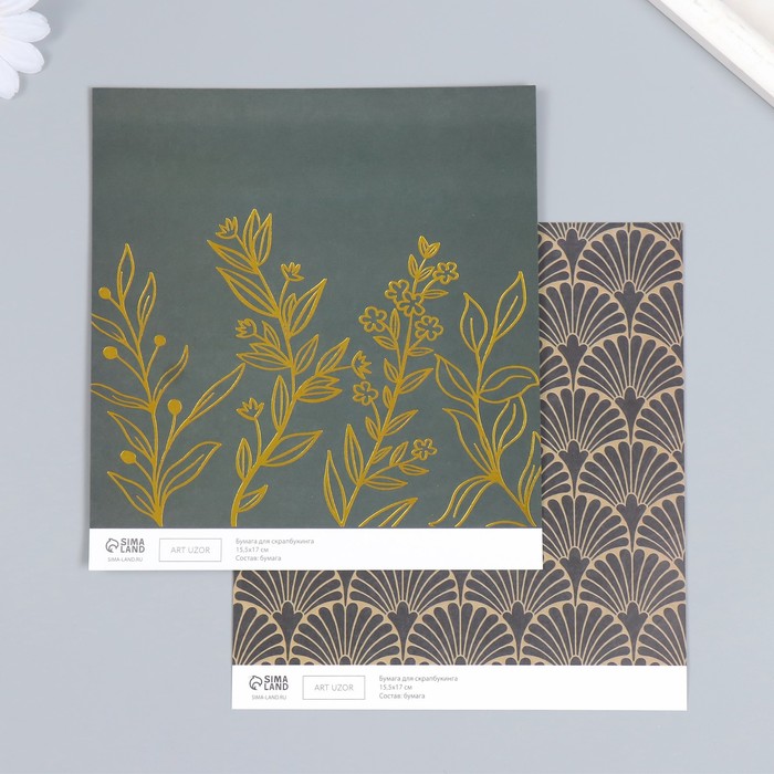 Бумага для скрапбукинга Арт Узор Веера и разнотравье золото 180гр 15,5х17см, 10шт, Разноцветный