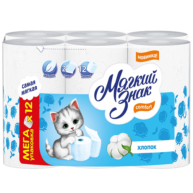 Бумага туалетная Мягкий знак Comfort, слоев: 2, листов 130шт., длина 16.2м, белый, 12шт. (С284), 0
