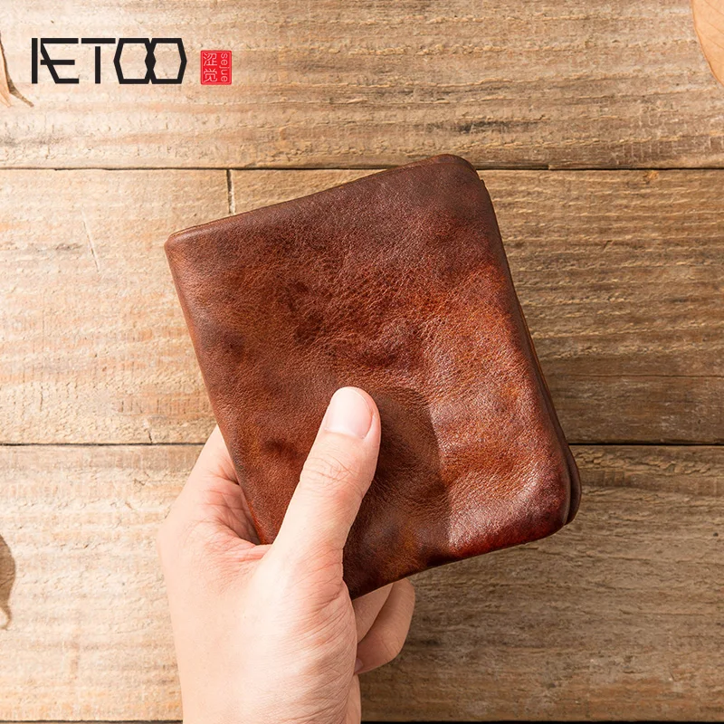 Бумажник AETOO мужской кожаный, винтажный, вместительный, ручной работы, из первого слоя кожи