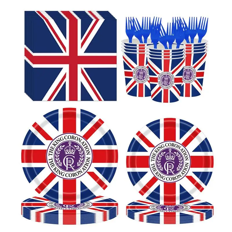 Бумажные стаканчики и тарелки Union Jack, набор для украшения, британский флаг, 16 шт., бумажные тарелки, салфетки, чашки для фестиваля, яркие товар...