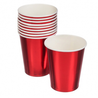 Бумажные стаканы металик красные (уп.10шт.), Красный