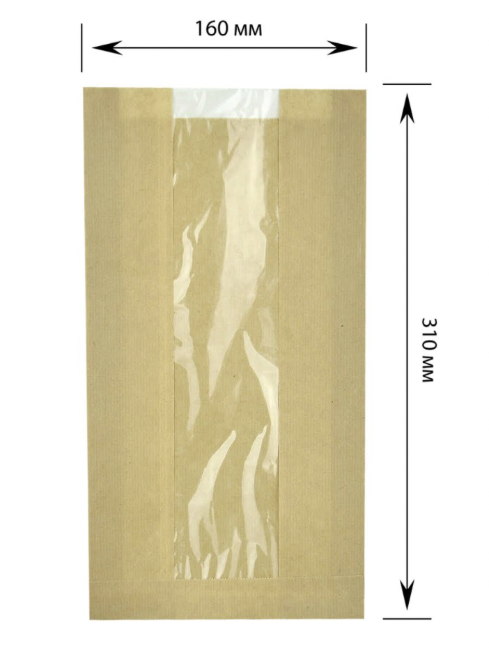 Бумажный пакет с прозрачной вставкой крафт 310х160х80 мм (100 шт.)