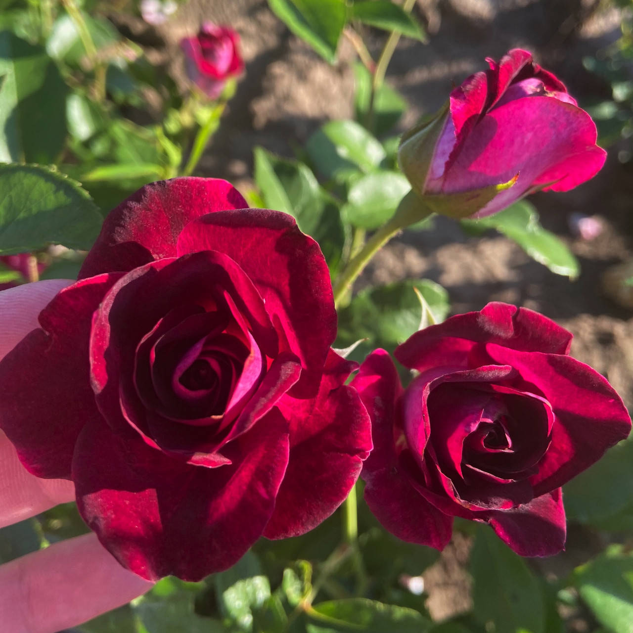 Эта роза действительно привлекает к себе взгляд! Стоит увидеть окраску воочию, чтобы поверить что она и в самом деле такая. Цвет темно-фиолетовый с более светлым реверсом, темно-красно-бордовые тычинки и пыльники, а лепестки бархатной текстуры. Цветки полумахровые и махровые в небольших кистях. Цветение волнами в течение всего сезона. Куст компактный, густой, шаровидный. Высота куста - от 75 см до 90 см, ширина - от 80 см до 100 см. Листва полуглянцевая, лист образован 5 листочками. Замечательный потомок сорта Iceberg, отличается такой же невероятной обильностью цветения. Роза великолепна в массовой посадке.
