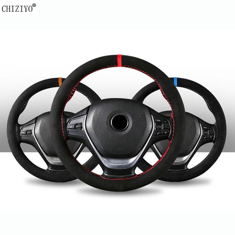 DIY Soft Suede Leather Steering Wheel Covers Universal Braid Car Steering Wheel With Needles And Thread Interior Accessories