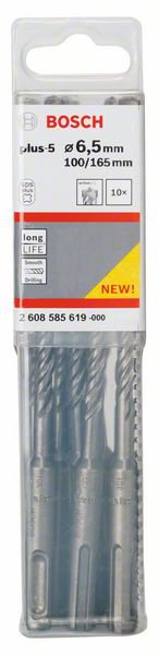 Бур SDS plus ⌀6.5мм x 100мм/165мм, 10шт. Bosch SDS plus-5 (2608585619)