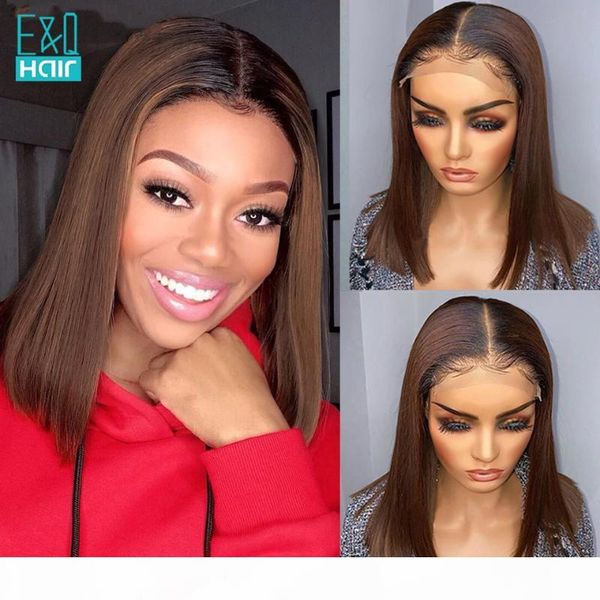 180% омбр темно-коричневая часть кружева фронт человеческий парик волос для женщин правленная бразильская реми ref colled bob кружева передн, Black;brown