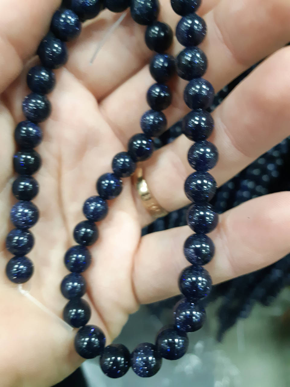 Бусины Авантюрин синий песок на нитке гладкий шарик d-6мм L-37см