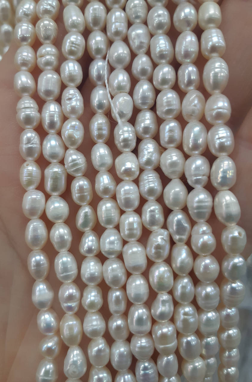Бусины Жемчуг рис на нитке d-5×6,5мм(+-) L-35см(+-)