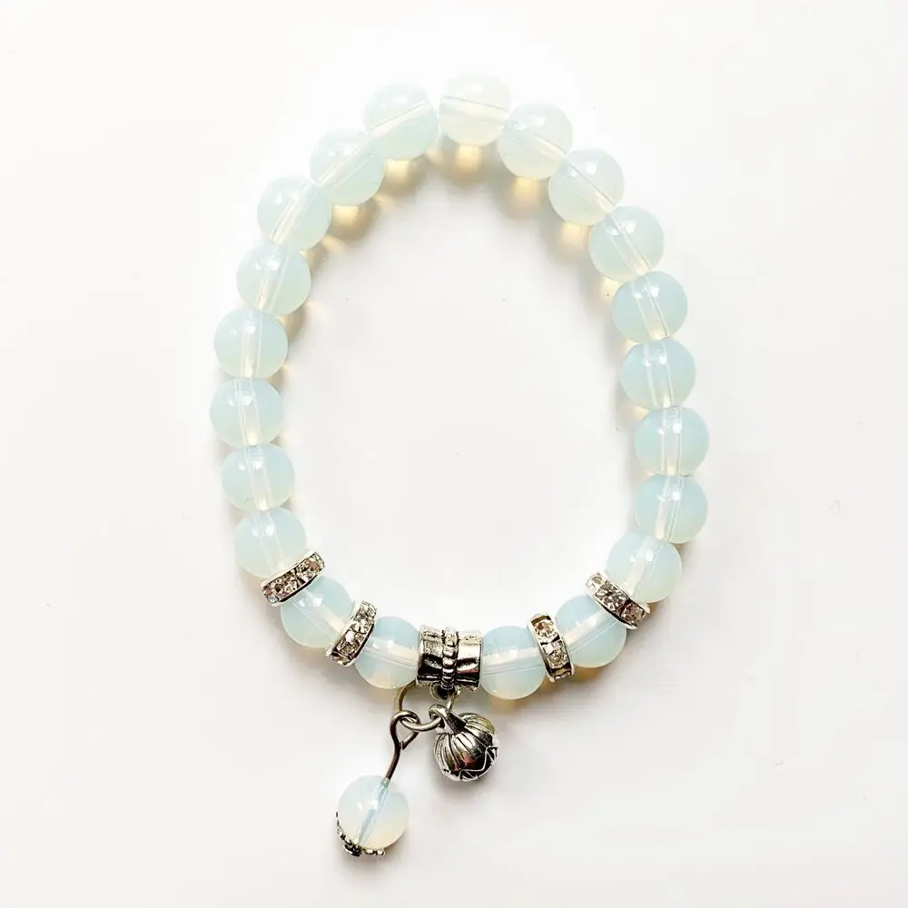 Бусины Из Белого опалитового кристалла, 8 мм, Круглый браслет из тибетского серебра, 1 шт.