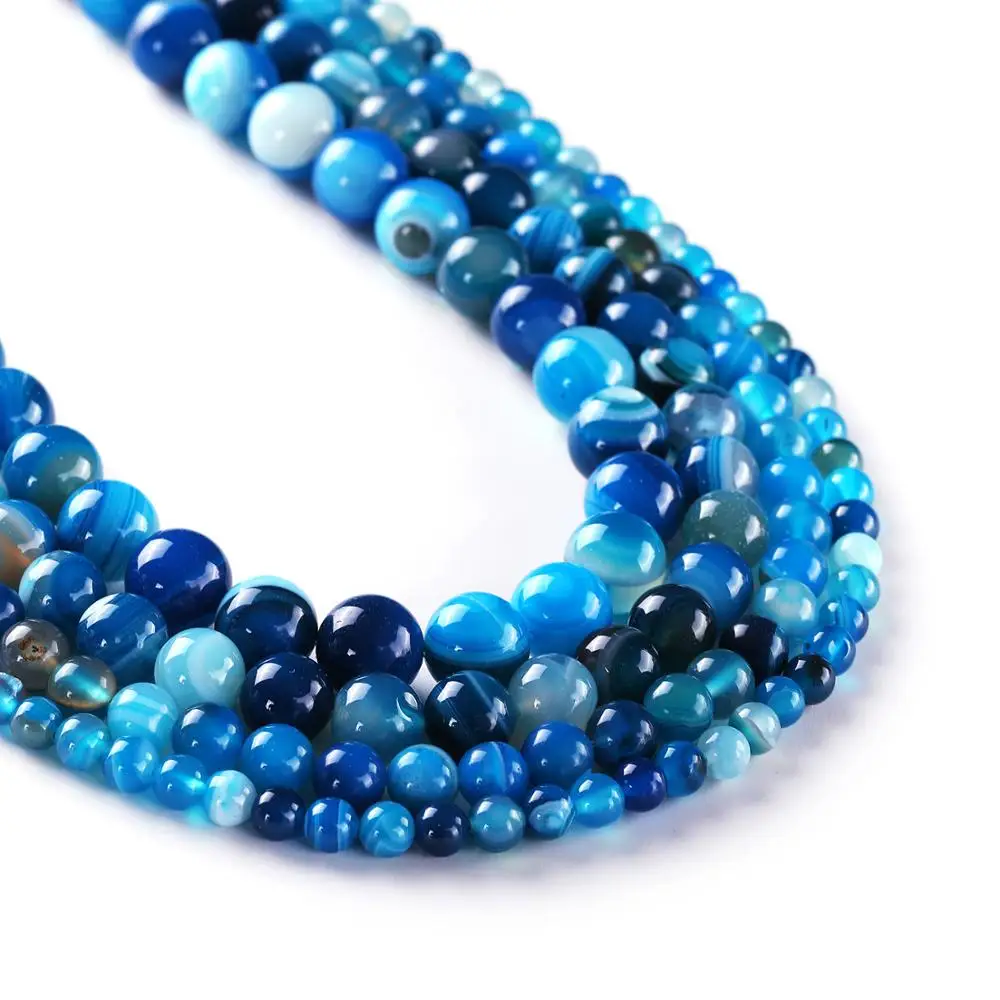 Бусины из агата в синюю полоску, круглые бусины из натуральных драгоценных камней, Размер 6 мм 8 мм 10 мм 12 мм