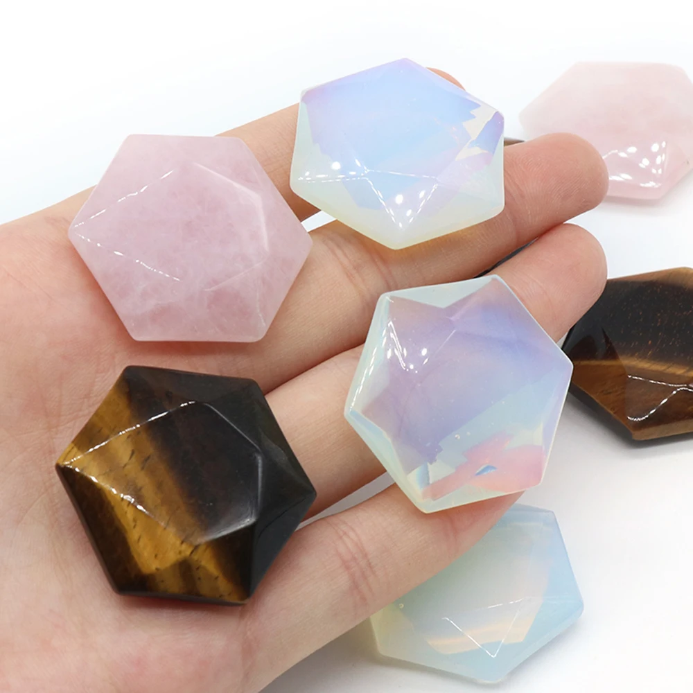 Бусины из натурального камня 33x 9 мм, шестиконечная звезда, натуральный розовый кварц, тигровый глаз, бусины для самостоятельного изготовлен...