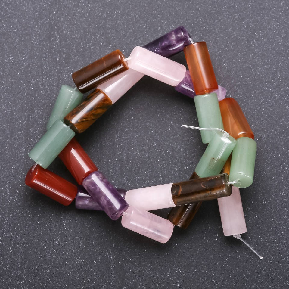 Бусины натуральный камень ассорти цилиндр d-8х17мм нитка L-39 см
