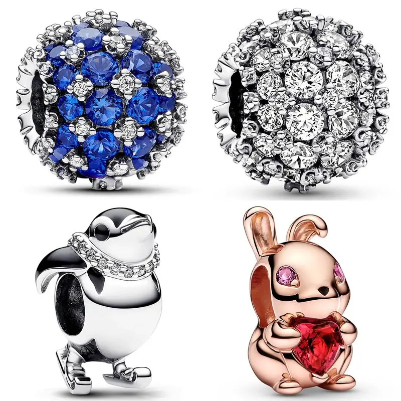 Бусины-шармы из серебра 925 пробы с синим и прозрачным шариком
