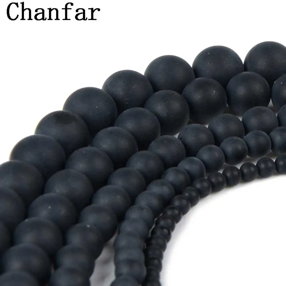 Бусины Chanfar из черного агата и оникса, Матовые Круглые бусины из натурального камня для изготовления украшений «сделай сам», размер 4, 6, 8, 10, 12...