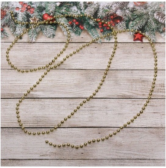 Бусы Серпантин на ёлку 2.0 м шарик средний (шампань) 556-265