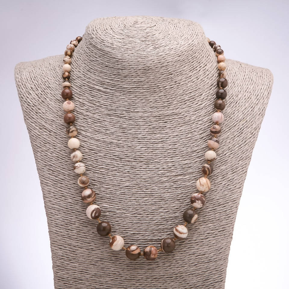 Бусы Яшма Зебра на увеличение гладкий шарик d-6-8-10мм L-48см