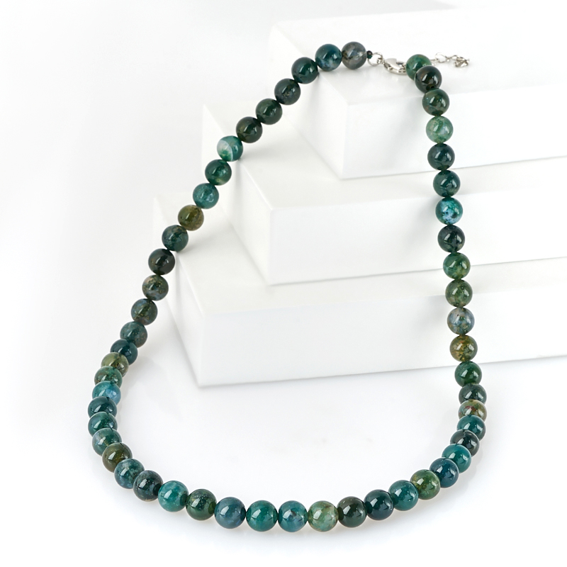 Бусы агат моховой (биж. сплав) 8 мм 45 см (+4 см)