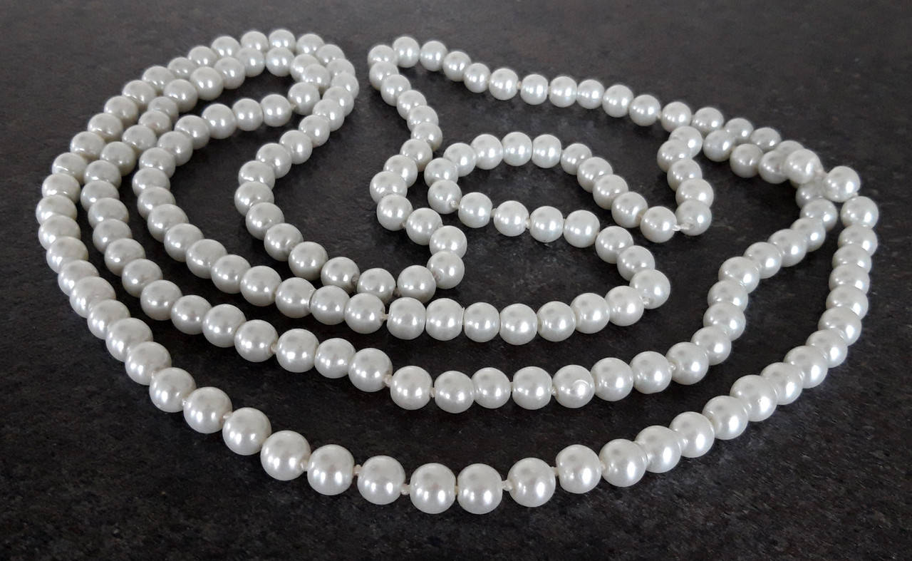 Бусы на шею белые длинные 75см х 0,8см стекло-керамика